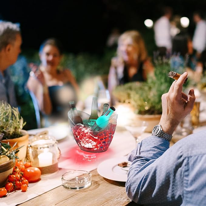 - Easy to Clean Ice Bucket: refreshing parties shouldn't end up with long cleaning hours; We ensure that with our light up clear ice bucket made from plastic material, it's simple to clean, just quickly rinse under the tap or a wipe down with a piece of cloth