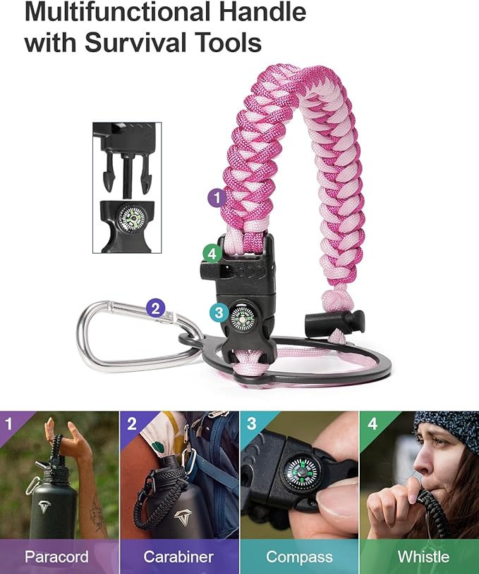 - Ready for adventures: The paracord handle is crafted from sturdy braided rope with an attached survival kit. This includes a compass, a whistle, and a clip, making it an ideal companion for any outdoor activity — be it camping,hiking or exploring new places through travelling.