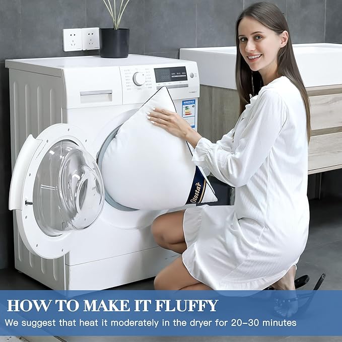 - FLUFFING INSTRUCTIONS:1.We recommend that you use a dryer,it will fluff up the pillow more quickly. (Shake vigorously and massage evenly the pillow will also help to make it fluffier.) 2.Open the plastic wrap and remove the pillows; Press the pillows vigorously; Squeeze the pillows vigorously; Fold the pillows vigorously; Wait 24-48 hours. Once fully loft, use the pillows as desired