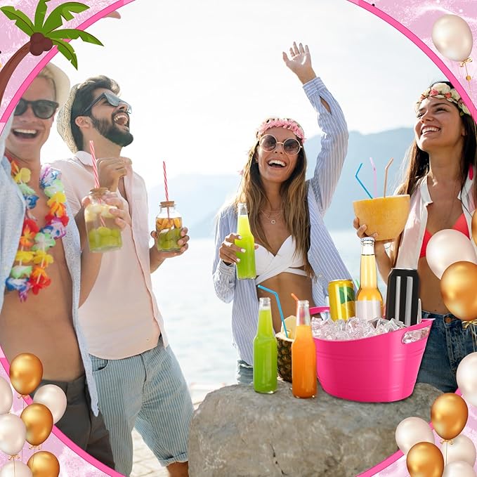 Norme 24 Pcs Oval Storage Tub with Handles, 4.5L Plastic Ice Bucket Wine Beer Champagne Bottle Drink Cooler Tub for Parties Beverage, Storage Basket (Rose Red)