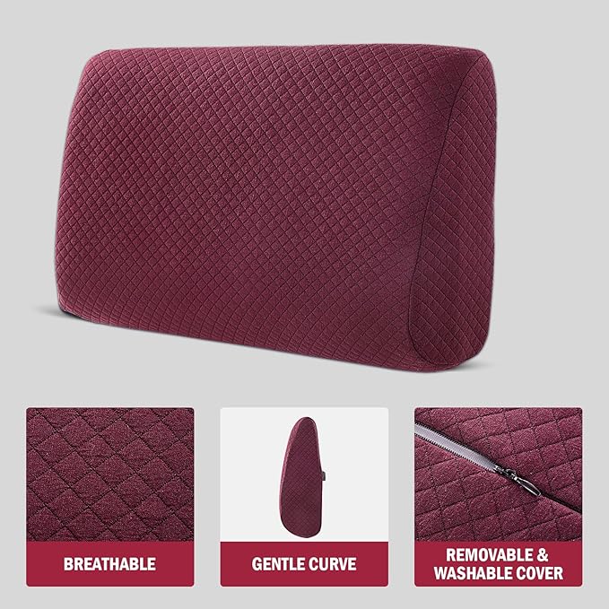 - 【Premium Memory Foam】The core of the lumbar support pillow is made of premium memory foam, the recliner lumbar support pillow adds height to support your back. It perfectly fits the natural curve of the back and provides extra support for the spine. The ergonomically designed lumbar pillow will effectively relieve back pain and improve your sitting posture.
