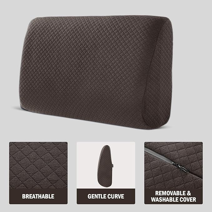 - 【Premium Memory Foam】The core of the lumbar support pillow is made of premium memory foam, the recliner lumbar support pillow adds height to support your back. It perfectly fits the natural curve of the back and provides extra support for the spine. The ergonomically designed lumbar pillow will effectively relieve back pain and improve your sitting posture.