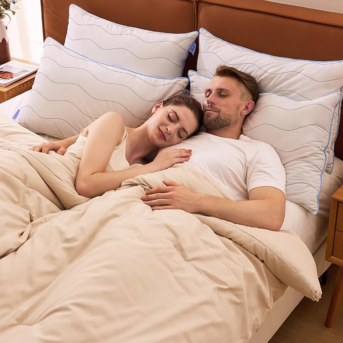 - LUXURIOUS ORGANIC COTTON - Experience hotel luxury with our 100% Organic Cotton shell. Certified by Oeko-Tex, its percale weave offers durability and breathability for a cool, comfortable sleep.m The soft surface is ideal for sensitive skin, ensuring a restful night without any feather poking or odors.