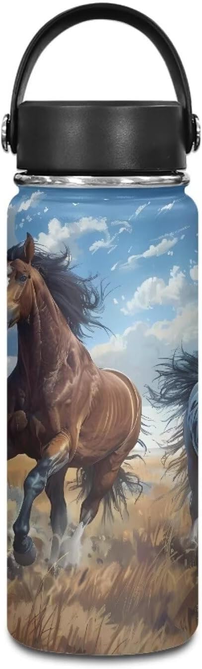 Horse Insulated Water Bottle with Handle 18 Oz Reusable Water Jug Thermal Water Bottles Keeps Iced Water Cold for Hours Sports Bottle