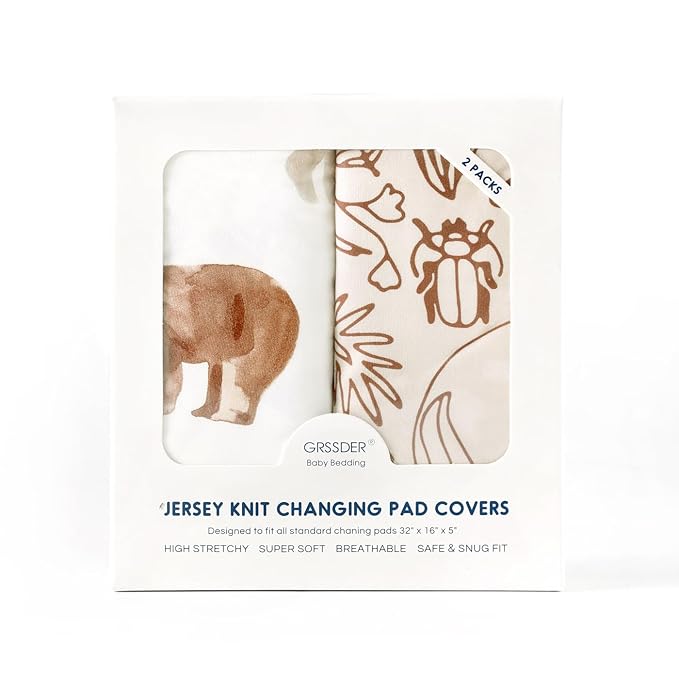 - Ultra Soft & 4-way Stretch: Made of 100% high quality soft stretchy jersey knit fabric. GRSSDER changing pad covers offer a breathable, sweat-absorbent tee shirt like feel for exceptional comfort, providing your little ones a safe and to stay in place throughout the day.