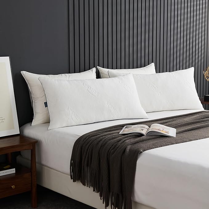 - Dual-sided Design★Get cozy with the cool side for hot sleeper, the AirC technology airy layer cooling pillows help you sleep cooler for 12+ hours. The other side is derived from "breathing" fiber, with excellent performance in moisture absorption and breathability, whether it's warm in the winter or cool in the summer, feeling so good on you skin. Just flip this hotel pillows over for a different experience