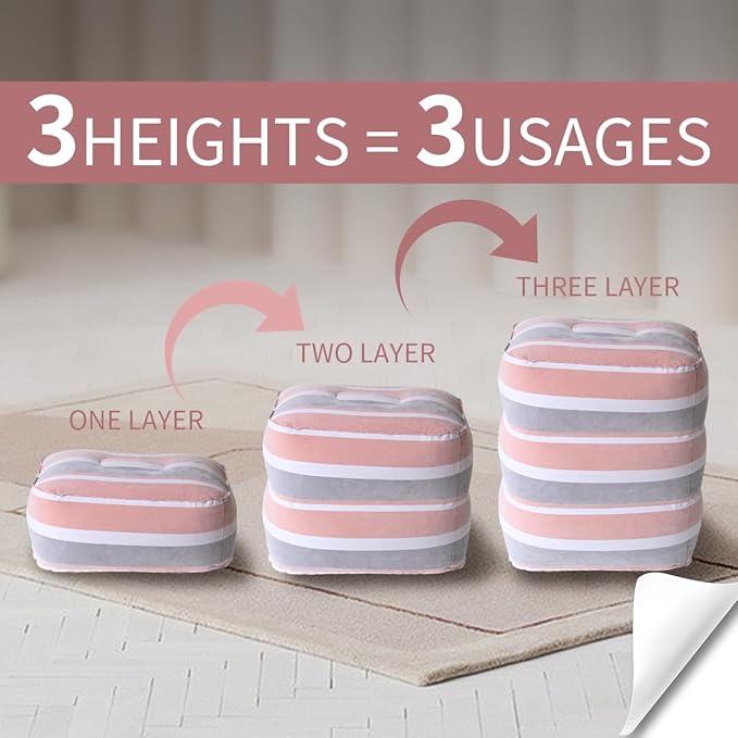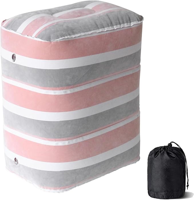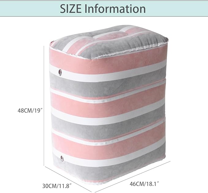 - 【Very User-Friendly Design】 Our inflatable foot rest pillow with 2-in-1 double valve,the upper black air valve is a one-way air inlet for inflating or replenishing gas. It is easy to get.