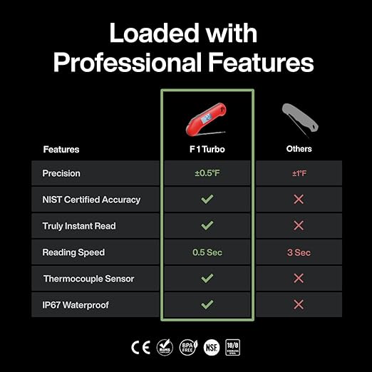 - NIST Certified Accuracy: It is officially certified by NIST (National Institute of Standards and Technology), ensuring it always provides 0.5°F (0.3°C) accuracy. This helps in getting precise temperature readings and cooking meats to the desired level of doneness.