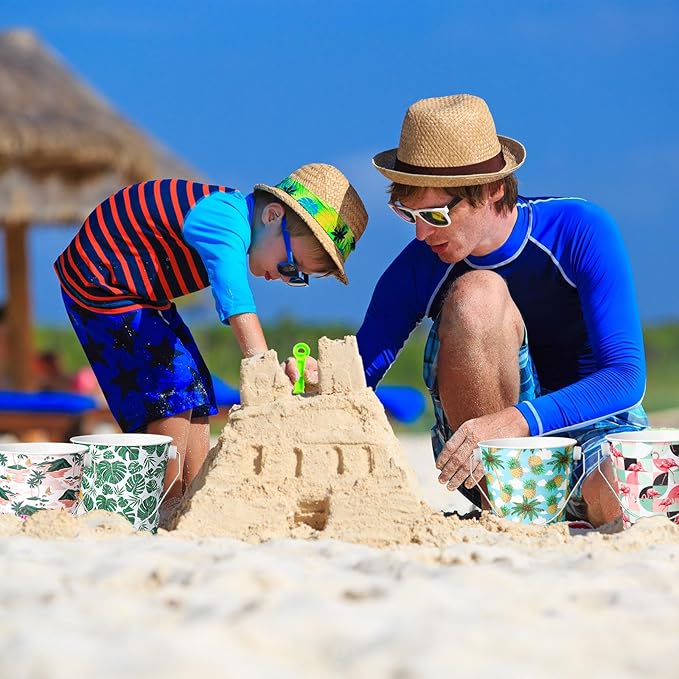- Diverse and Attractive Patterns: the set of 16 galvanized metal pail buckets for kids features diverse and eye catching patterns; From palm leaves and pineapples to flamingos and ocean elements, these small buckets with handle are sure to catch the eye with their bright colors; Each set consists of 4 different patterns, with 4 buckets for each pattern, offering numerous style combinations for the little ones to enjoy