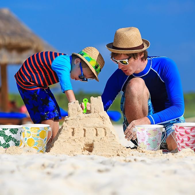 - Diverse and Attractive Patterns: the set of 16 galvanized metal pail buckets for kids features diverse and eye catching patterns; From green leaves and watermelon to flamingos and lemons, these small buckets with handle are sure to catch the eye with their bright colors; Each set consists of 4 different patterns, with 4 buckets for each pattern, offering numerous style combinations for the little ones to enjoy
