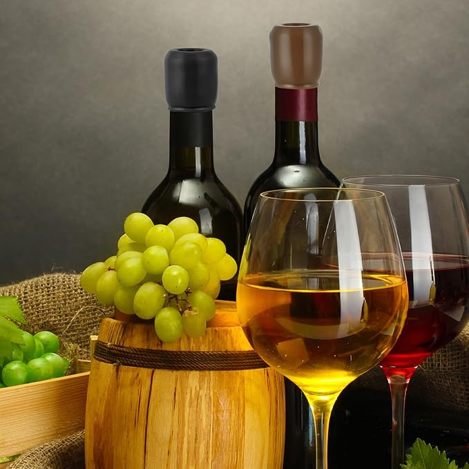 - 【Sealable and No Leaks】: These wine stoppers are made of food-grade silicone and can seal your wine bottles. Vacuum rubber seal fits most wine bottles and other similar features.