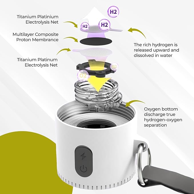 Hydrogen Water Bottle with TDS Meter & Portable Hook - High-Capacity, BPA-Free, Alkaline Water Generator, Leakproof, Ideal for Travel, Sports, College Students