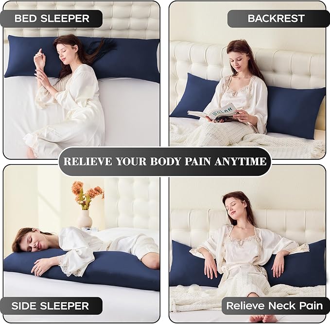 - 【Versatile Support】: Ideal for various sleeping positions, this large body pillow maintains its shape over time, preventing lumpiness or flattening. Perfect for side and back sleepers, it offers extra comfort and support for relaxing hips, back, neck, or stomach. It effectively alleviates body aches like back and hip pain, catering to the needs of adults and pregnant women.