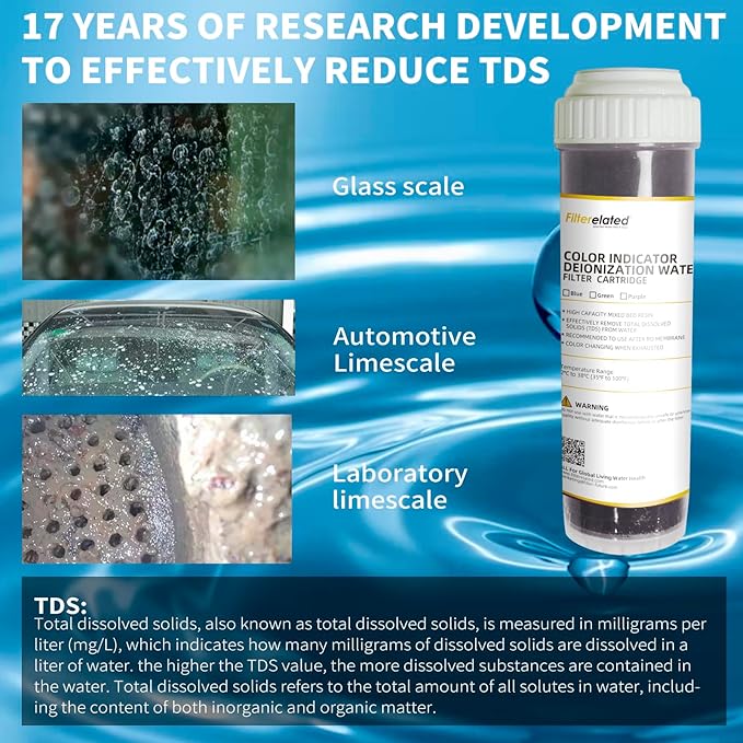 10 * 2.5 "Color-Changing Nuclear Grade Mixed Bed Deionized Resin Filter,Life Span Color Change Display, Replaceable Filter Media, Ro Residential Water Filter Change, Zero Water Filter