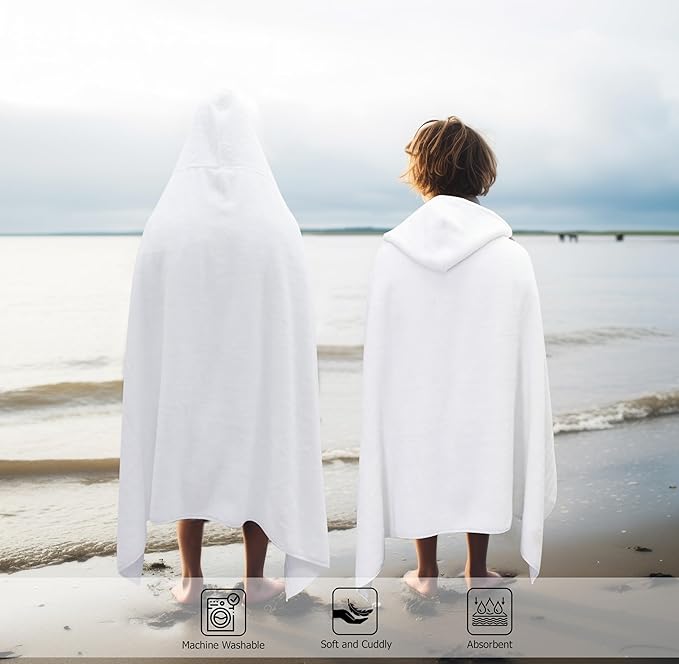 Hooded Bath Towel Wrap -Super Zero Twist 100% Cotton Large Oversized Hooded Kids Towel - Toddler Shower Pool Beach Towel - Super Soft Absorbent Quick Dry Easy Care Gift - 30 x 54 - White