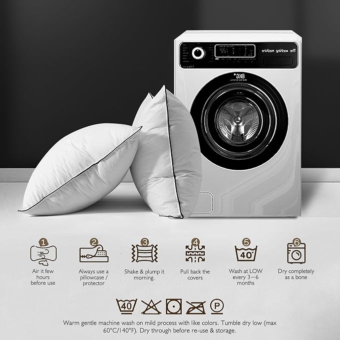 - ๐๐ฉ๐ข๐ญ๐จ๐ฆ๐ ๐จ๐ ๐๐ฎ๐ฑ๐ฎ๐ซ๐ฒ & ๐๐จ๐ฆ๐๐จ๐ซ๐ญ๏ผOur down pillows standard size set of 2 made from responsibly sourced down feathers, they are washed multiple times to ensure cleanliness, scentless, and allergy-friendly; Tested by OCS, OEKO-Standard 100, RDS, etc