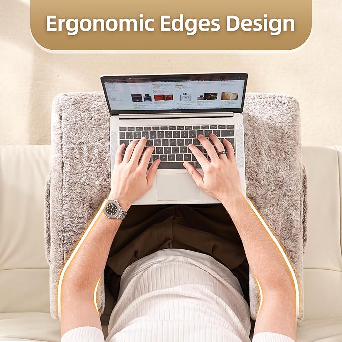 Homguava Reading Pillow Memory Lap Desk Foam Pillow for Adults Gaming Pillow Arm Rest Pillow for Reading, Crocheting, Gaming or Sitting in Bed (Furry Brown, Large)