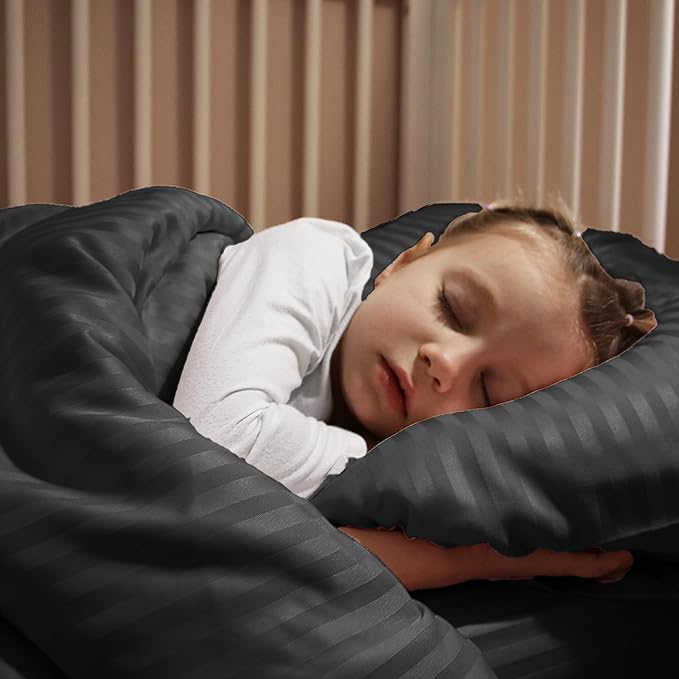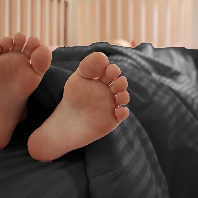Toddler Bedding Set - 4 Piece Soft Crib Bedding Set for Boys, Includes Toddler Comforter, Flat Sheet, Fitted Sheet and Pillowcase, Black Stripe