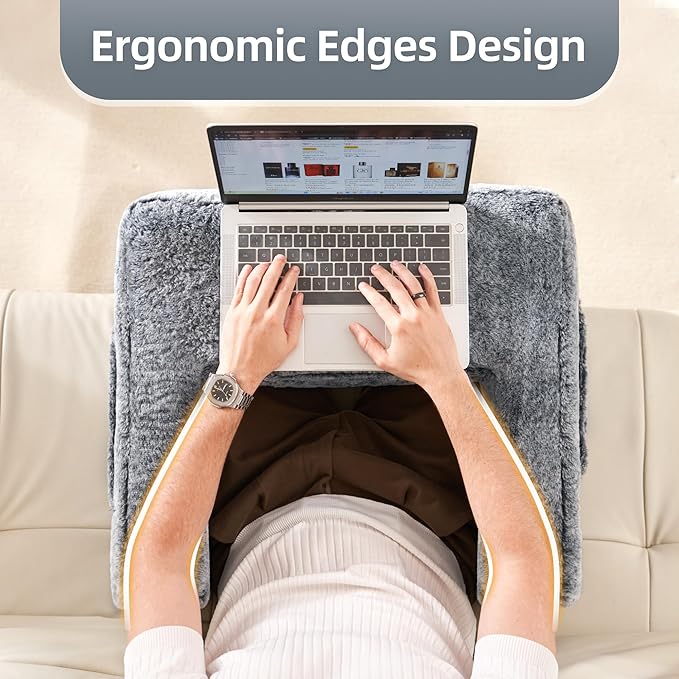 Homguava Reading Pillow Memory Lap Desk Foam Pillow for Adults Gaming Pillow Arm Rest Pillow for Reading, Crocheting, Gaming or Sitting in Bed (Furry Grey, Large)
