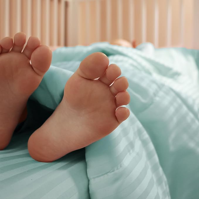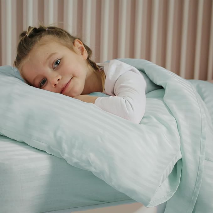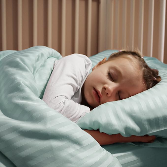 Toddler Bedding Set - 4 Piece Soft Crib Bedding Set for Boys and Girls, Includes Toddler Comforter, Flat Sheet, Fitted Sheet and Pillowcase, Green Stripe