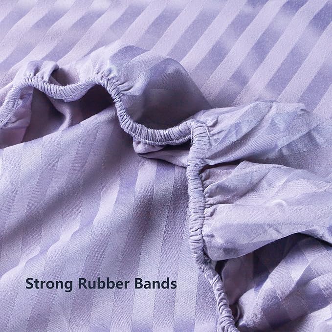 Twin Comforter Set with Sheets, 5 Pieces Super Soft Twin Bed in a Bag, All Season Solid Color Kids Bedding Set Neutral for Boys & Girls, Purple Striped