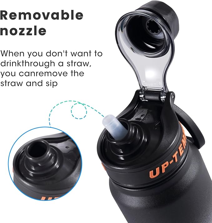 - This insulated and cooled sports water bottle comes with a removable straw, meaning you can choose between two drinking options. The cap has a silicone ring leak-proof design that makes it completely leak-proof, so you don't have to worry about leakage whether you put it on its side or upside down.