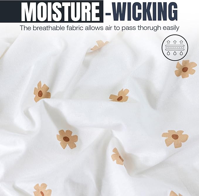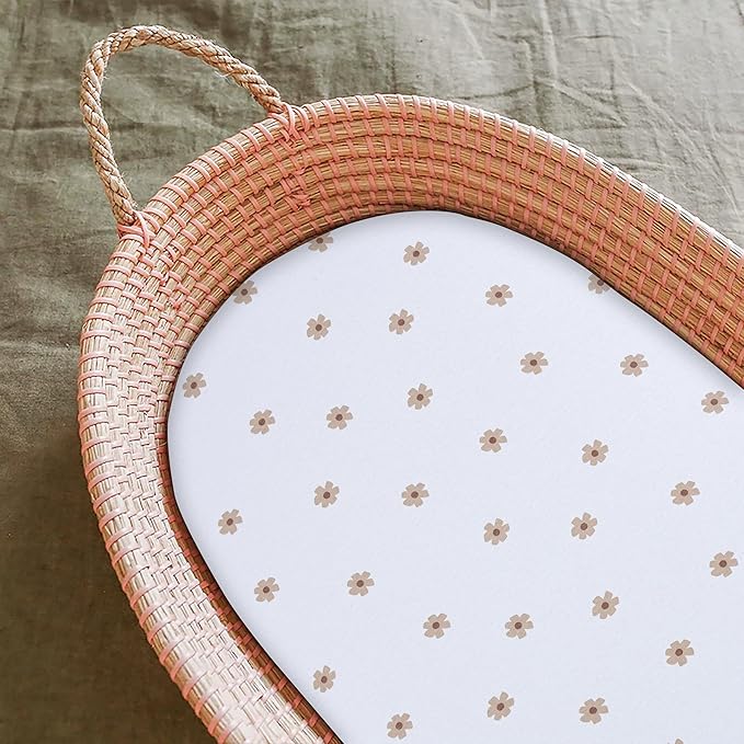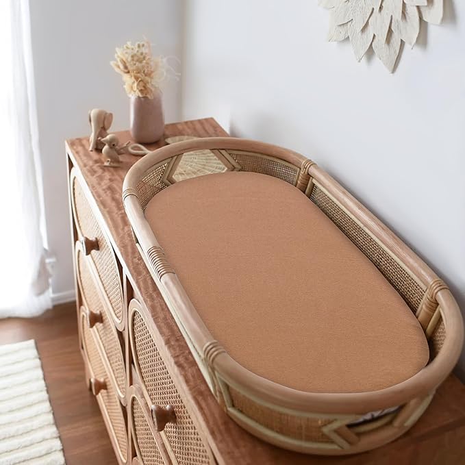 Bassinet Sheet, 100% Cotton Knitted Jersey, Fit Bassinet Crib Mattresses, Fitted Crib Sheets, Super Soft, Toddler Fitted Sheet, Unisex,2 Pack,Brown/Flowers, 17x32x4