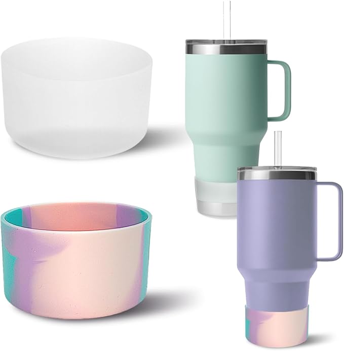 2 PCS Silicone Protective Boot for Yeti Rambler 20oz/25oz/30oz/35oz Tumbler, Anti-Slip Protective Silicone Water Bottle Bottom Boot Sleeve Cover for Yeti Tumbler [Mixcolor+Transparent]