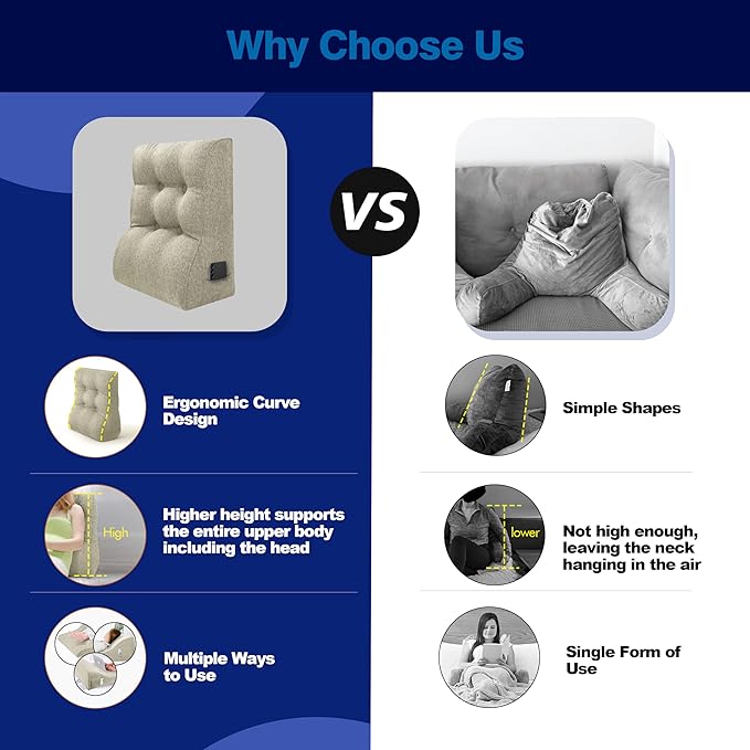 - Newly Upgraded Design Bed Wedge Pillow: This Reading Pillows for Sitting in Bed has been designed and rigorous testing to better suit your needs and ensure a perfect fit for the curve of your back. This provides maximum comfort for your back and waist, enabling you to read, watch TV, or work on your laptop more comfortably in bed.