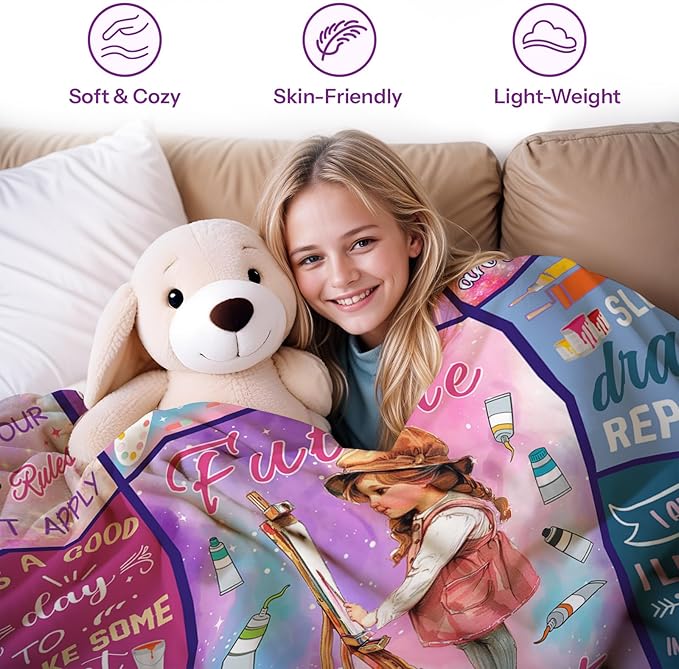 - Artist Gifts: This artist blanket is specially designed for art lovers, artists, art teachers, children studying art, etc, is not only to bring warmth, but also to bring love, it is a great gift when you give it to your family or friends who study art