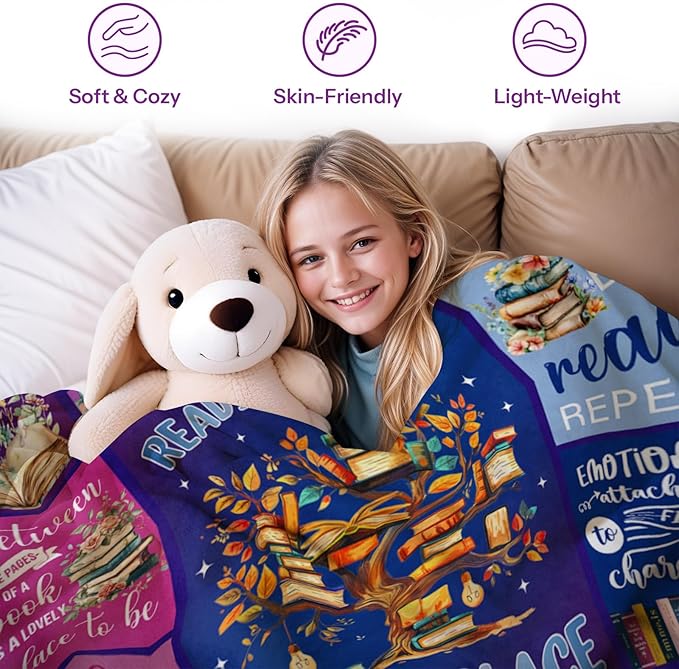 Book Lovers Gift Throw Blanket, Book Lovers Gifts Blanket, Book Reader Gifts, Blanket Gifts for Book Lovers, Gifts for Book Lovers Women on Birthday Christmas Graduation 50x60 in