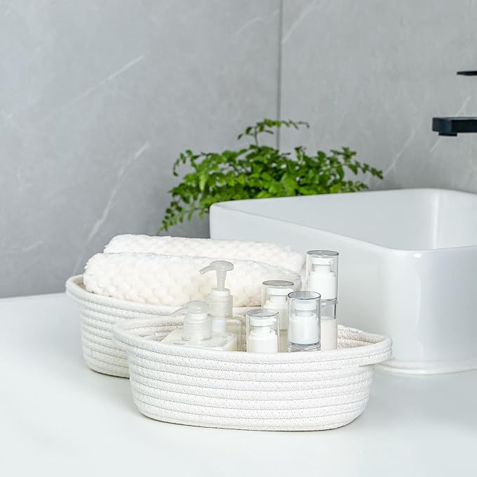 - THE DURABLE BASKET-Our multi-purpose storage organizer basket made from 100% organic cotton rope,soft natural & eco-friendly,No toxic chemicals or ingredients,so they’re completely safe for little one or pets.