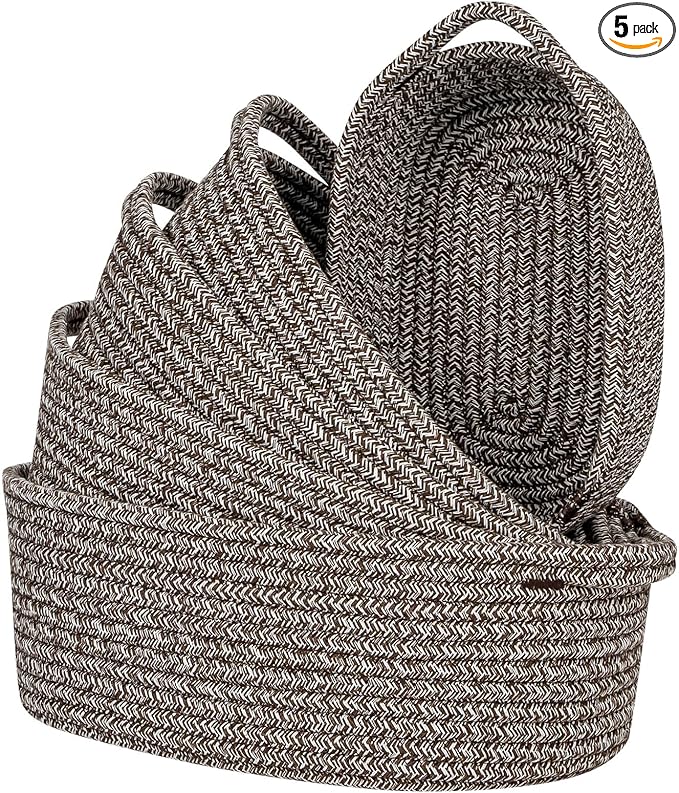 CubesLand Small Shelf Shelves Closet Over Toilet Storage Cube Organizer Basket Bin 5-Piece,Woven Basket Bin for Organizing,Nesting Cute Rope Baby Dog Cat Toy Basket Box,Brown Basket for Storage