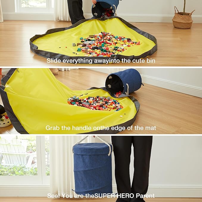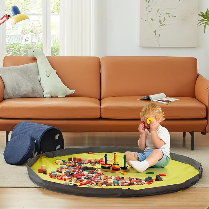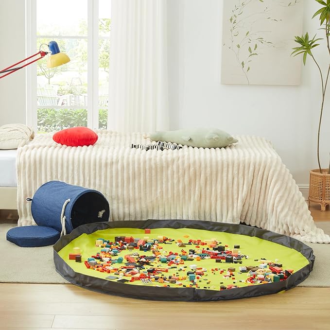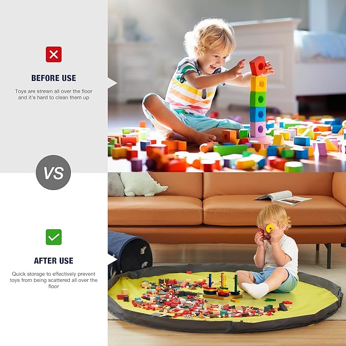 - Save Your Floors From Toy Clutter-This floor storage basket has an 59" integrated play mat that prevents your kid's toys from spilling off. Saves you precious time on cleanup.