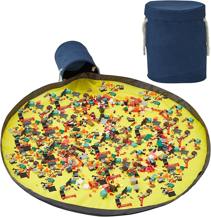 EXQ Home Toy Storage Basket and Building Bricks Toy Play Mat for Kids Rooms (11.8 x15 inches) - Organizer Storage Organizer for Toys, Playroom Canvas Bag Gift for Boy/Girls Navy Blue