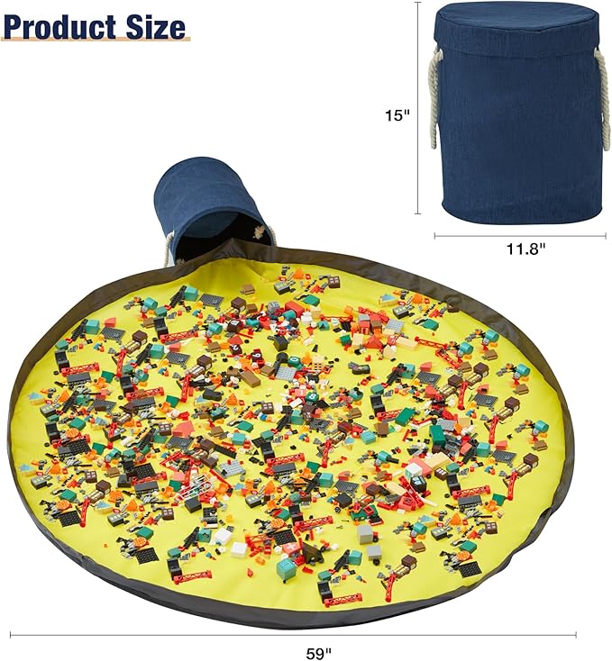 - Looks Better Storage-Our toy basket is a 11.8" wide x 15" tall , with a 59" playmat for creative play. Just use 1 bag for all your kid toys, cars, action figures, dolls.