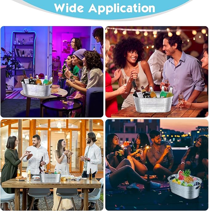 - 🥂【Multi-functional Galvanized Tub】With its generous capacity, 4 pack ice bucket offers ample space to accommodate a variety of bottles, cans, and ice cubes. Its expansive interior makes it an indispensable choice for parties and events where a range of beverages need to be kept chilled