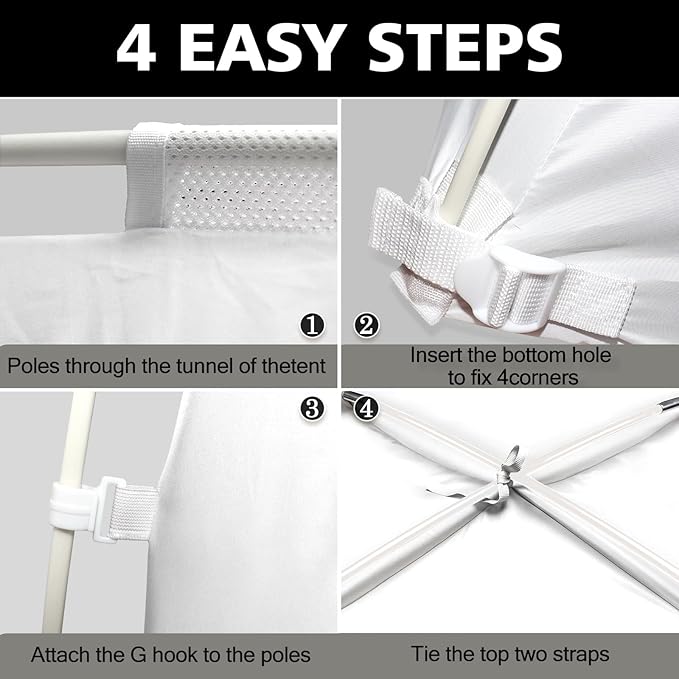 - Easy to Set Up: 2 fiberglass poles through the tunnel of the tent, insert the bottom hole to fix 4 corners, easy to set up in minutes. Size is 80"x60"x55" H, please measure your bed size before purchasing the bed tent.