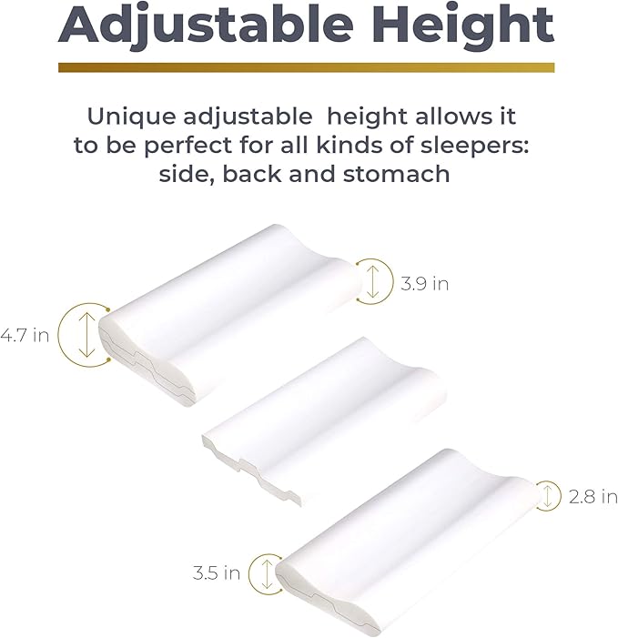 - The unique 3-layer design allows you to adjust the memory foam contour pillow for optimal orthopedic support so you can sleep comfortably all night. Simply remove the middle layer of memory foam to customize your comfort level. Your body will be molded to the back and side sleeper cervical pillow for a complete ergonomic sleep.