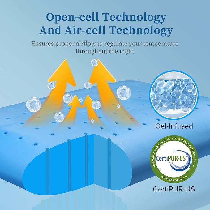 - COOL GEL INFUSION: Designed for cooler sleep, QUTOOL memory foam pillow is infused with gel microbeats to creates a more breathable foam that helps dissipate body heat while you sleep