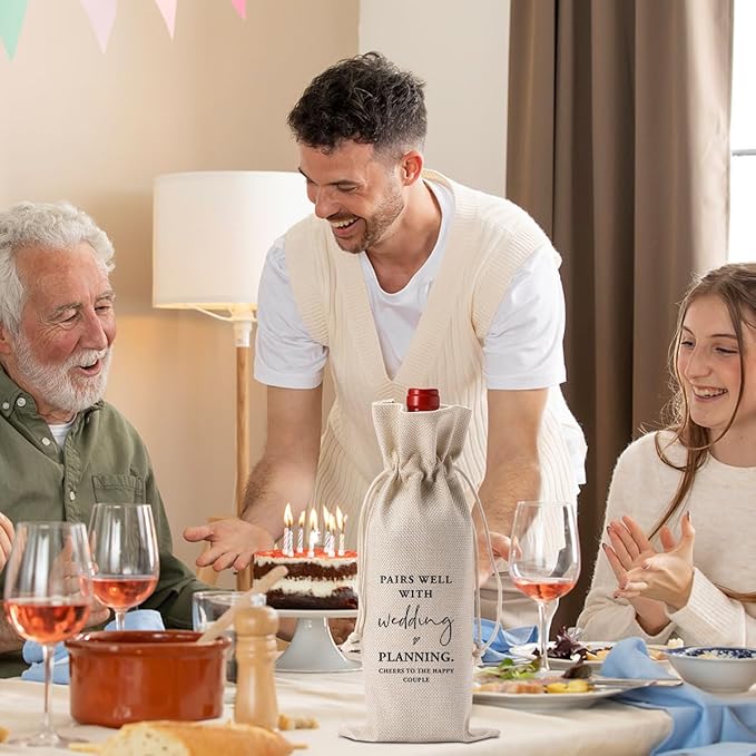 - 【Engagement Gifts Ideas】Don't just stop at engagement wedding wine bag bottles! This fun engagement wedding wine bag is the perfect addition to a birthday party, and also it's a perfect gift idea. Because in addition to decorating wine bottles, it can also store various holiday gifts, making every holiday full of ritual, making it a must-have for every holiday you celebrate! You can even put it in a gift basket and give it to them as a gift.