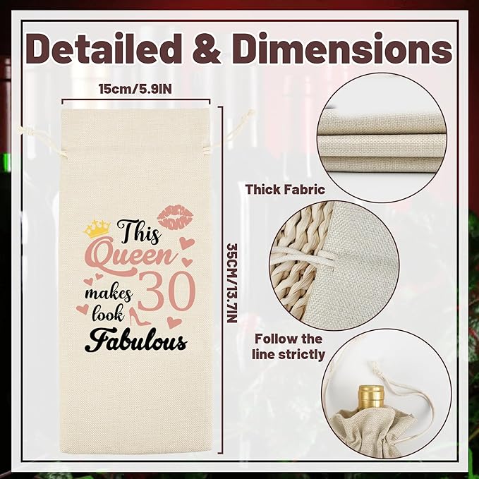 • 【30th Birthday Gift】Our wine bottle gift bags are printed with warm letters and blessings, this gift is suitable for every friend and colleague from all walks of life, including teachers, librarians, firefighters, and more, guaranteed that They will be in a happy mood after receiving the gift.