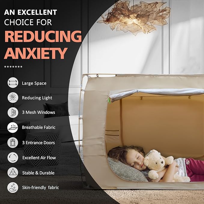 Bed Tent Bed Canopy Twin Size Tents for Adult and Kids- Portable Dream Tent Indoor Sleeping Tents 70% Blackout with 3 Doors Breathable Big Space Tents