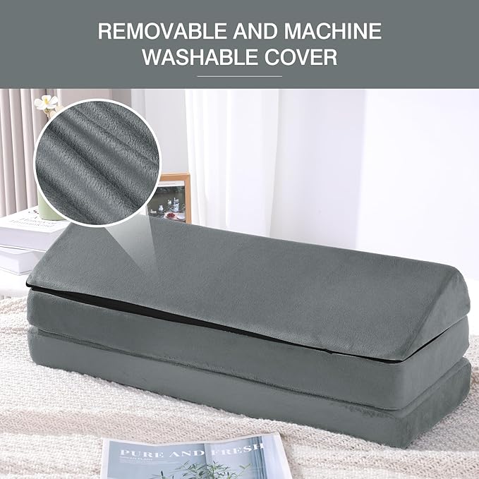BALAPET 3-in-1 Adjustable Height Wedge Pillow, 7" Height Leg Knee Pillow for Side Sleepers & Aligns Spine, Supportive Bolster Pillow for Pregnancy Relieves Pressure Hip Leg Elevation, 22', Light Grey
