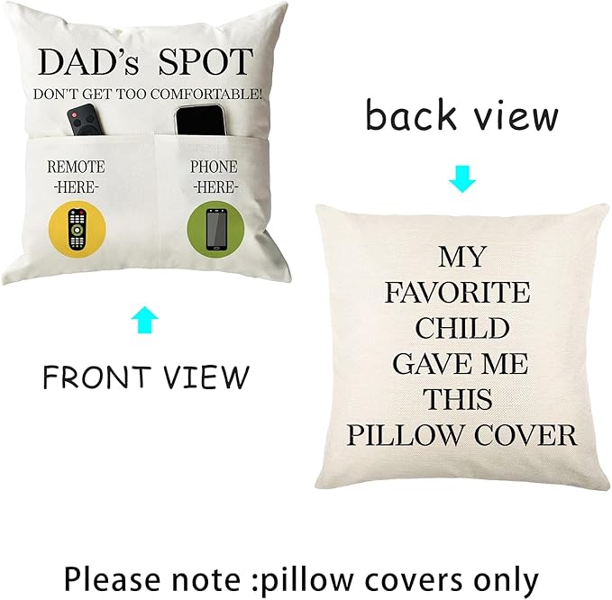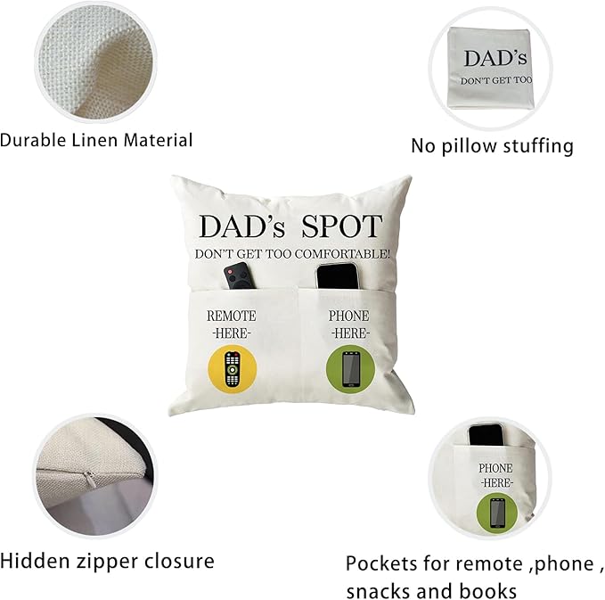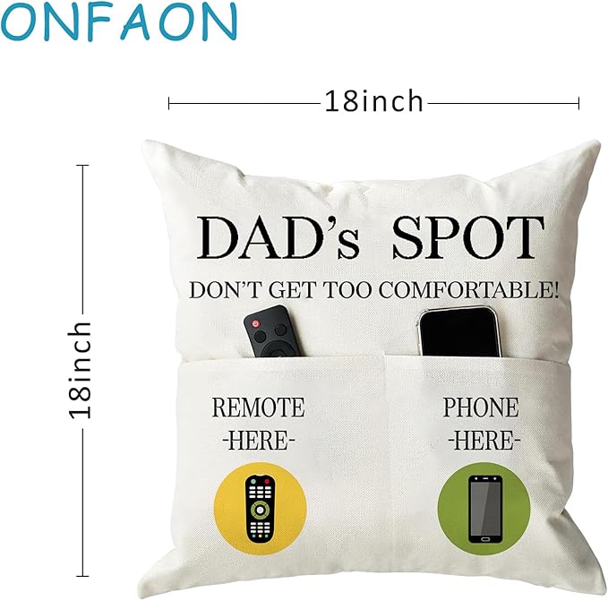 Father's Day Throw Pillow Case, Dad's Spot Throw Pillow Covers 18 x 18 Inch,Dad Gifts from Daughter Son,Birthday Christmas Thanksgiving Day Gifts for Papa Stepdad ,2-Pocket