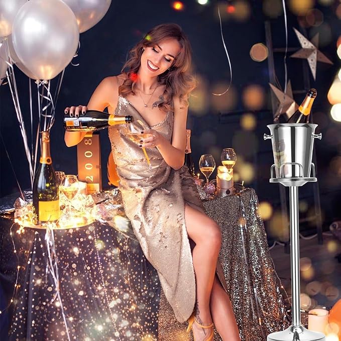 - 【Keep ice for 6 hours】 Your champagne or beer can be kept cold in this stainless steel ice bucket for 3-6 hours, keep your wine chilled for your party while The banner bottom container is made of high quality stainless steel material, durable