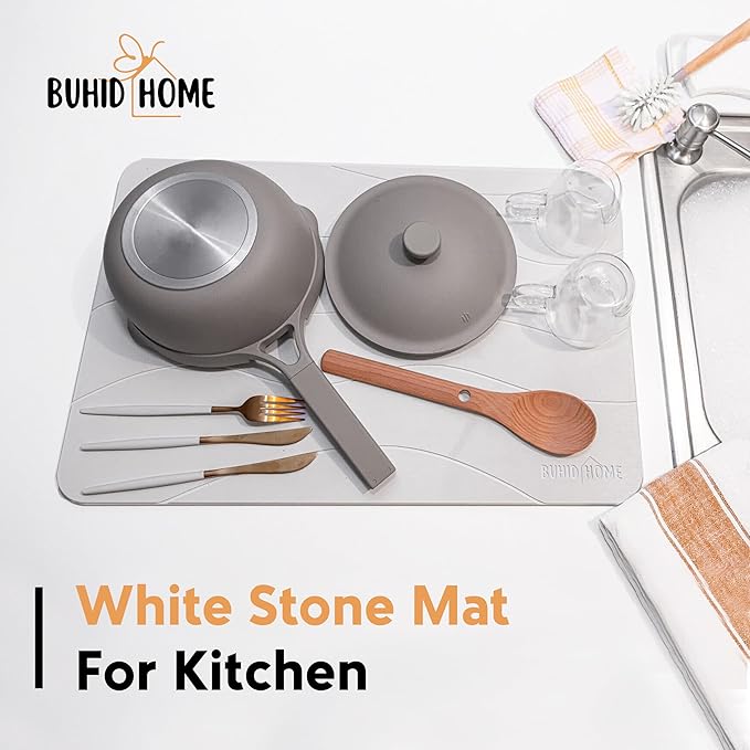 - ๐๐ฎ๐๐ ๐ง๐ผ ๐๐น๐ฒ๐ฎ๐ป: Say goodbye to traditional dish drying hassles with our stone mat. A simple wipe with a damp cloth or towel and a quick rinse ensures your kitchen stays hygienic and the mat is ready to use in minutes