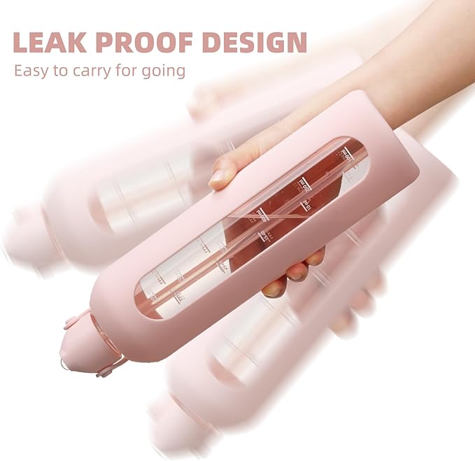 - 【HUMANIZED DESIGN DETAILS】The 20 oz glass water bottle featured with straw lid with premium handle lid, 100% leak-proof.The motivational 1 Liter glass bottles have two ways to drink water by a high quality straw and drink directly after remove the lid, which is very convenient and fast,and it also conveniently fits in cup holders.