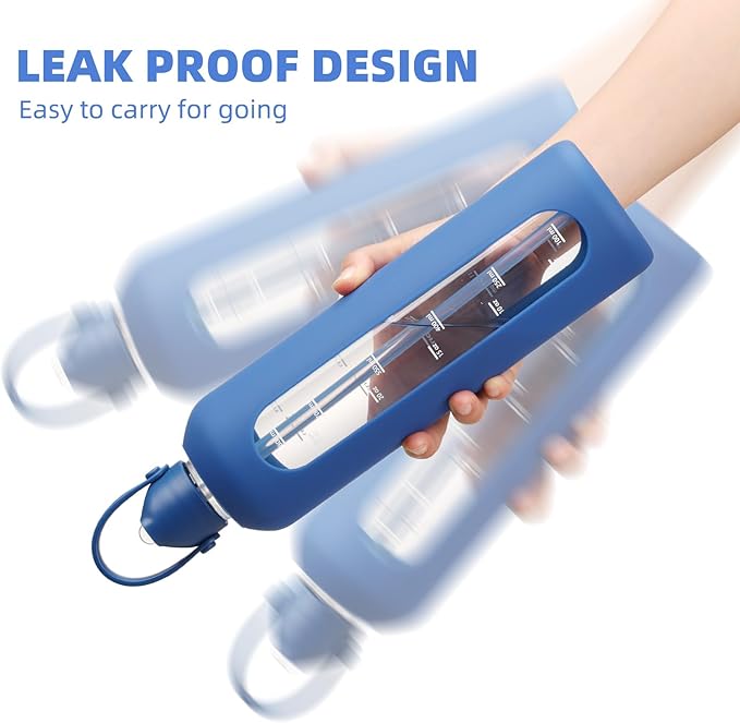 - 【HUMANIZED DESIGN DETAILS】The 20 oz glass water bottle featured with straw lid with premium handle lid, 100% leak-proof.The motivational 1 Liter glass bottles have two ways to drink water by a high quality straw and drink directly after remove the lid, which is very convenient and fast,and it also conveniently fits in cup holders.
