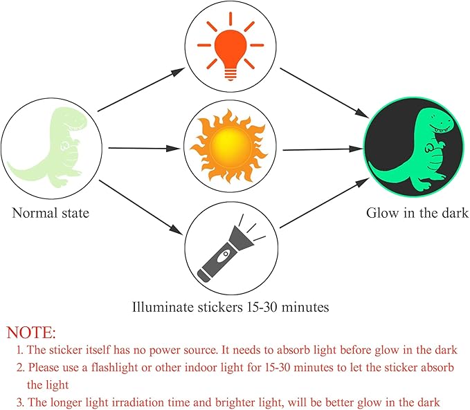 - ★ 【Easy application and long glow time】The sticker comes with adhesive backing, so Stickers were very easy to peel and stick, very vibrant. Just peel and stick, no glue or mess. You just need to put it under lamplight flashlight or lighting for 10 minutes,it will keep glowing for 8-10 hours. plant stickers